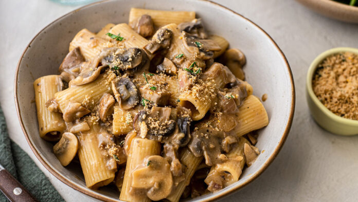 Γεμίζουμε μια μεγάλη κατσαρόλα με 5 λίτρα νερό και την βάζουμε σε υψηλή φωτιά. Μόλις το νερό αρχίσει να βράζει, προσθέτουμε 35 γρ. αλάτι και ρίχνουμε τα Ριγκατόνι και βράζουμε σύμφωνα με τις οδηγίες της συσκευασίας μείον 1 λεπτό. Κρατάμε στην άκρη 1 κούπα από το νερό που βράζουν τα ζυμαρικά.