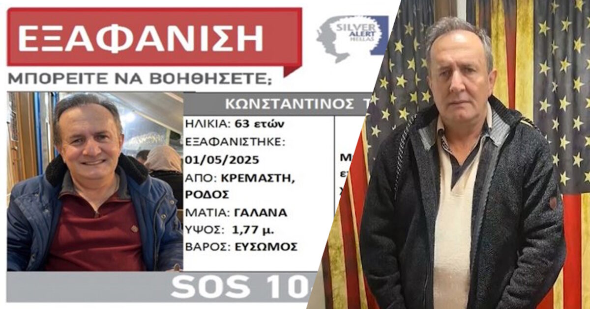Το τελευταίο στίγμα του 64χρονου εντοπιζόταν στην περιοχή της Λίνδου, με την ΕΛ.ΑΣ. να είχε εξαπολύσει ευρείες έρευνες σε συνεργασία με εθελοντές και την υποστήριξη της Γραμμής Ζωής, η οποία είχε εκδώσει Silver Alert.