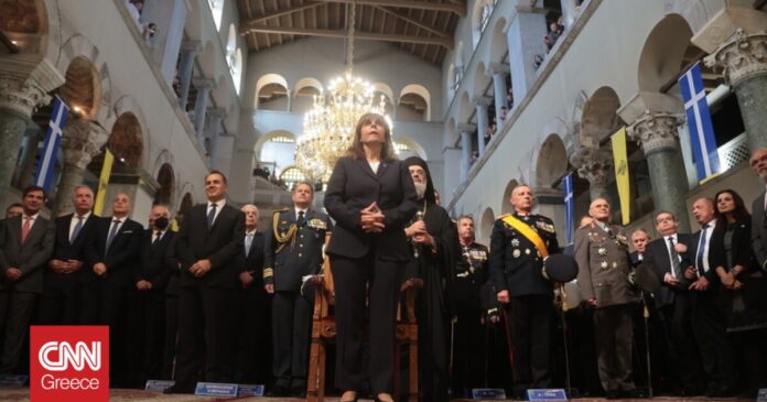 Τη σημασία της ομοψυχίας για να αντιμετωπίσουμε τις μεγάλες προκλήσεις της εποχής μας, υπογράμμισε η Πρόεδρος της Δημοκρατίας Κατερίνα Σακελλαροπούλου, στη δήλωση που έκανε μετά την επίσημη δοξολογία στον ιερό ναό του Αγίου Δημητρίου στη Θεσσαλονίκη.