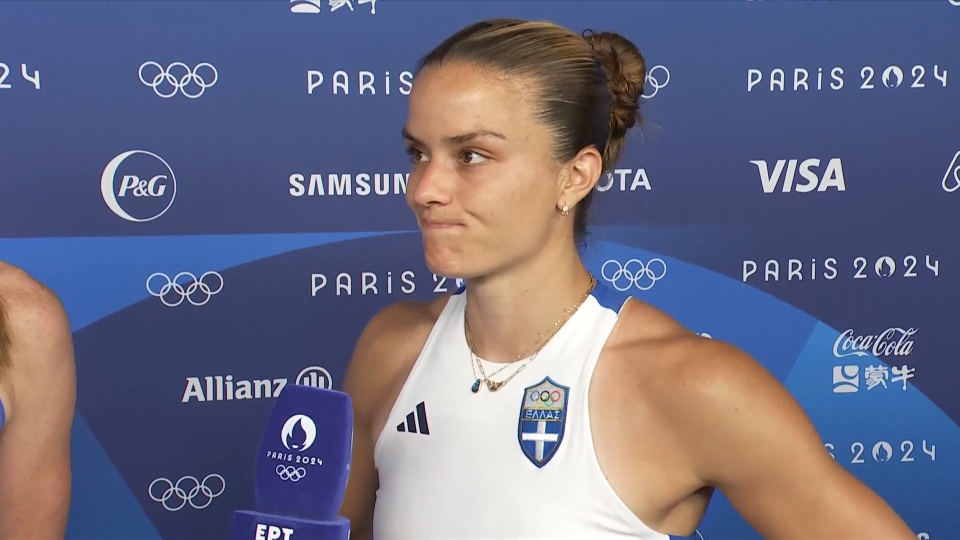 Η κορυφαία Ελληνίδα τενίστρια μίλησε στην κάμερα της Δημόσιας Τηλεόρασης, λίγα λεπτά μετά την ολοκλήρωση των υποχρεώσεών της στους Ολυμπιακούς Αγώνες του Παρισιού.