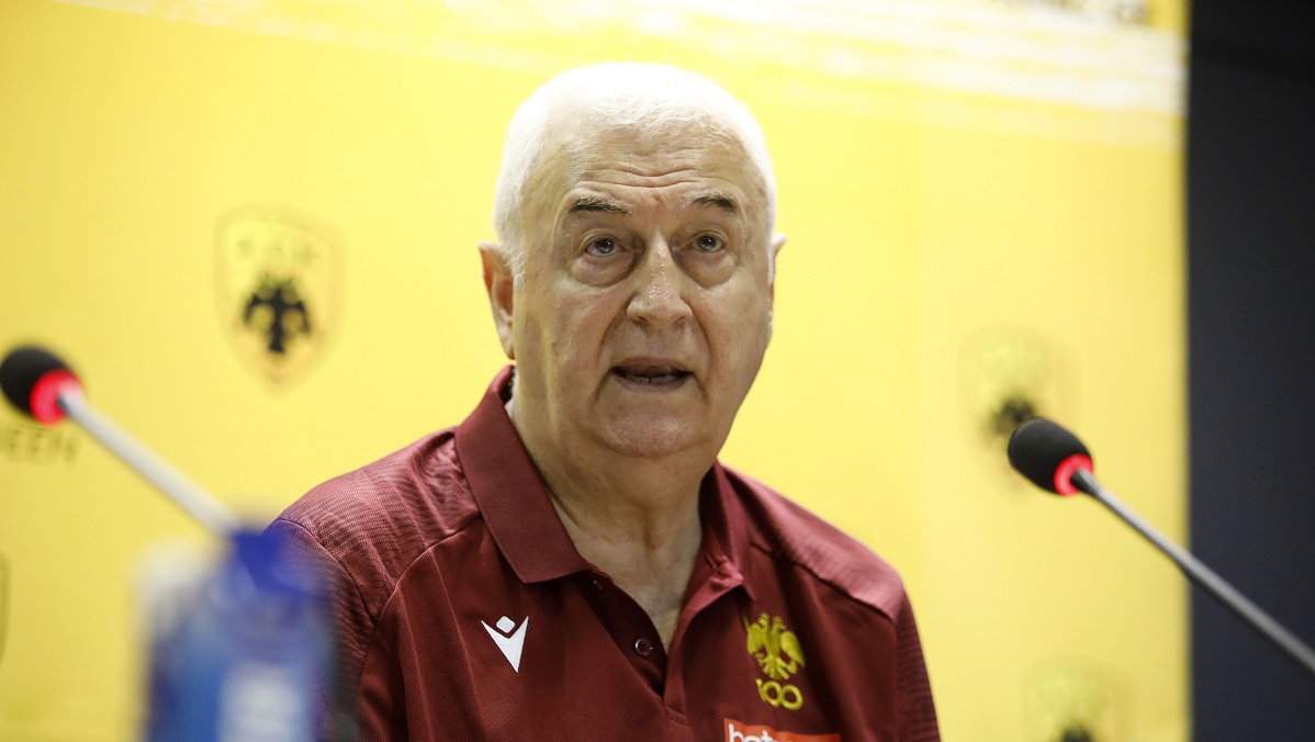 Για το αν είχε ενδοιασμό για να αναλάβει την θέση του προπονητή στην ΑΕΚ: «Την απόφαση την είχαμε πάρει. Είχα κι εγώ πριν 2 χρόνια έναν στόχο να επιστρέψω στην Ευρωλίγκα. Ήθελα να αποδείξω στον εαυτό μου πως μπορούσα να έχω επιτυχίες εκεί. Η πανδημία μας σταμάτησε το 2020 με τον Ερυθρό Αστέρα. Τα πρώτα 2 χρόνια δεν ήταν σωστό να γυρίσω και μετά από 2 χρόνια το σκεφτόμουν και πάλι αλλά είχα δουλειές, φέτος ξεκινήσαμε πιο νωρίς τις κουβέντες, πριν τελειώσει η χρονιά στην Ιταλία. Κατάλαβα πως ίσως ήταν η ώρα να προσπαθήσω να επιστρέψω και να δώσω πράγματα».