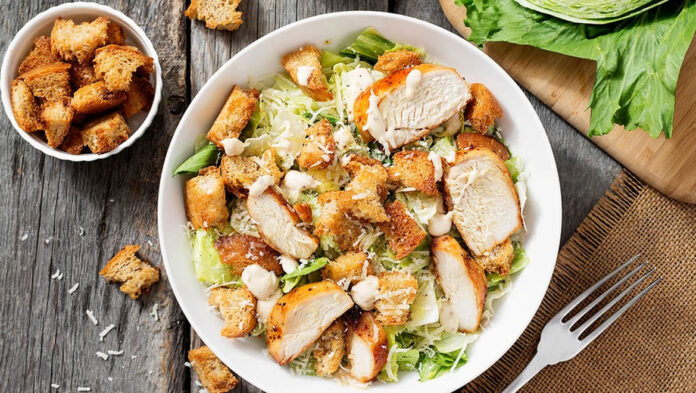 Σαλάτα του καίσαρα με κοτομπουκιές