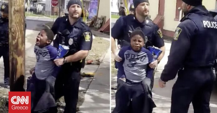 Σε βίντεο το οποίο έχει κυκλοφορήσει στα social media και έχει γίνει viral μέσα σε λίγες μέρες με εκατομμύρια προβολές, φαίνεται ένας αστυνομικός να κρατά μικρό αγόρι που κλαίει, από τα μπράτσα, πριν το βάλει στο περιπολικό.