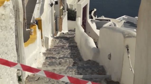 Το κύμα μαζικής φυγής από το νησί συνεχίζεται. Στα άλλοτε πολύβουα σοκάκια τοποθετούνται σημάνσεις προκειμένου να μην προσεγγίζουν κάτοικοι και επισκέπτες, υπό τον κίνδυνο κατολισθήσεων.