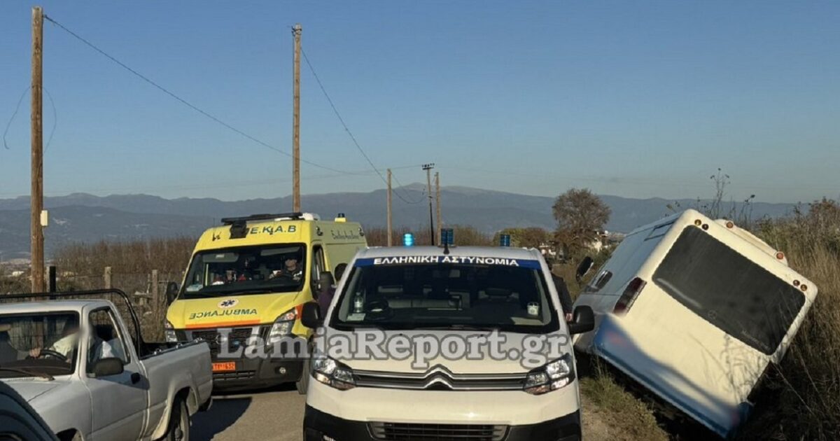 Σε χαντάκι έπεσε σχολικό λεωφορείο στη Λαμία / Lamiareport