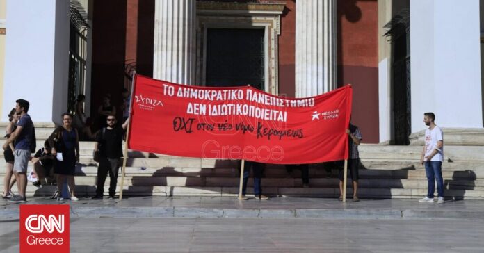 Στους δρόμους βρίσκονται φοιτητές, όπου πραγματοποιούν πορεία διαμαρτυρίας ενάντια στο νέο νόμο – πλαίσιο για τα πανεπιστήμια.