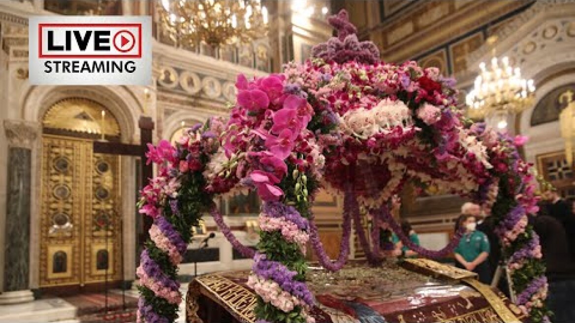 Όπως έγινε σε ναούς ανά την επικράτεια, έτσι και στον Καθεδρικό Ιερό Ναό Αθηνών τελέστηκε η Ακολουθία του Επιταφίου Θρήνου και ακολούθησε η Περιφορά του Επιταφίου.