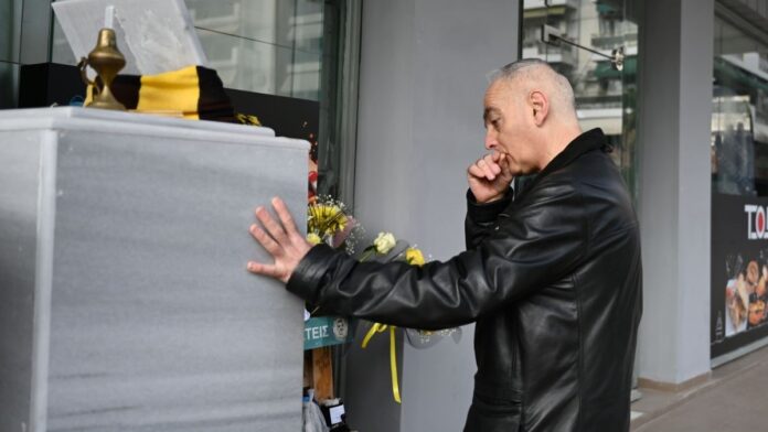 Ο πατέρας του, Άρης, εμφανώς συγκινημένος, άφησε λουλούδι προς τιμήν του γιου του.