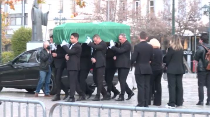 Η σορός του Μίμη Δομάζου έφτασε λίγο μετά τις 09.00 στη Μητρόπολη Αθηνών όπου και τέθηκε σε λαϊκό προσκύνημα. Σύμφωνα με τον προγραμματισμό, στις 15.00 θα ξεκινήσει η εξόδιος ακολουθία και στη συνέχεια θα ακολουθήσει η κηδεία του στο Α’ Νεκροταφείο Αθηνών σε κλειστό οικογενειακό κύκλο.