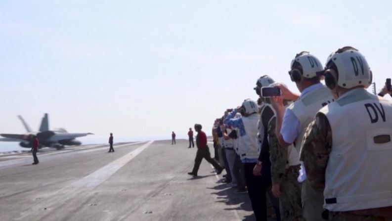 Δυο αμερικανικά αεροπλανοφόρα, το Lincoln και το Gerald Ford είναι στην περιοχή οπλισμένα με εκατοντάδες μαχητικά F-35, F-16 και F-22 Raptor.
