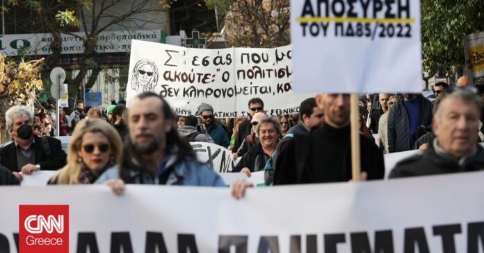 «Έχουν περάσει 40 ημέρες από την έκδοση του ΠΔ 85/2022, 40 μέρες που σύσσωμος ο καλλιτεχνικός κόσμος είναι στους δρόμους και με πλήθος δημόσιων δράσεων και τοποθετήσεων δηλώνει με κάθε δυνατό τρόπο την αντίθεσή του σε αυτό το κατάπτυστο νομοθέτημα.