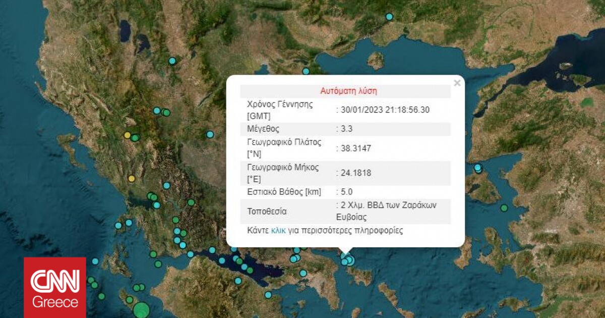 Σεισμικη δόνηση μεγέθους 3,3 βαθμών της κλίμακας Ρίχτερ αναστάτωσε τους κατοίκους της Εύβοιας το βράδυ της Δευτέρας (30/01).