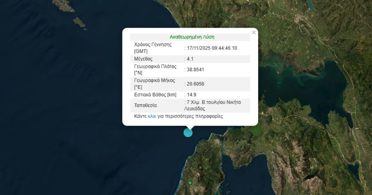 Σεισμός αναστάτωσε τη Λευκάδα το πρωί της Δευτέρας 17.11.2025.