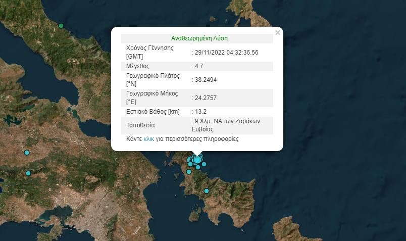 Σύμφωνα με την αναθεωρημένη λύση του Γεωδυναμικού Ινστιτούτου ο σεισμός στην Εύβοια που ταρακούνησε και την Αθήνα είχε ένταση 4,7 της κλίμακας Ρίχτερ και όχι 4,8 Ρίχτερ.