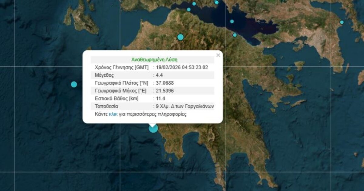 Σεισμός ταρακούνησε την Μεσσηνία το πρωί της Πέμπτης, 19.02.2026 και προκάλεσε αναστάτωση στους κατοίκους.