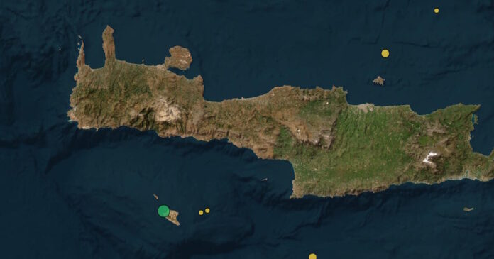 Το επίκεντρο της δόνησης εντοπίζεται στο θαλάσσιο χώρο 4 χλμ. βορειοδυτικά της Γαύδου.