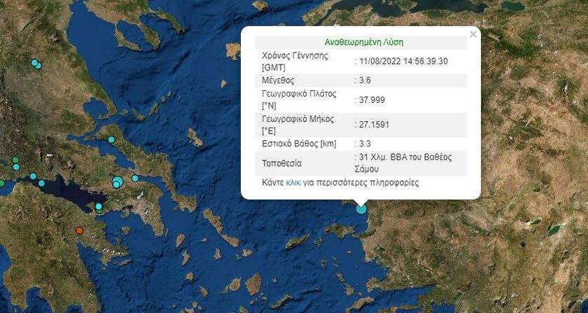 Σύμφωνα με το Γεωδυναμικό Ινστιτούτο, ο σεισμός είχε μέγεθος 3,6 Ρίχτερ και σημειώθηκε 31 Χλμ. ΒΒΑ του Βαθέος Σάμου.