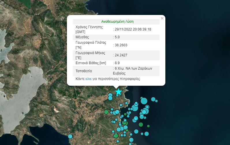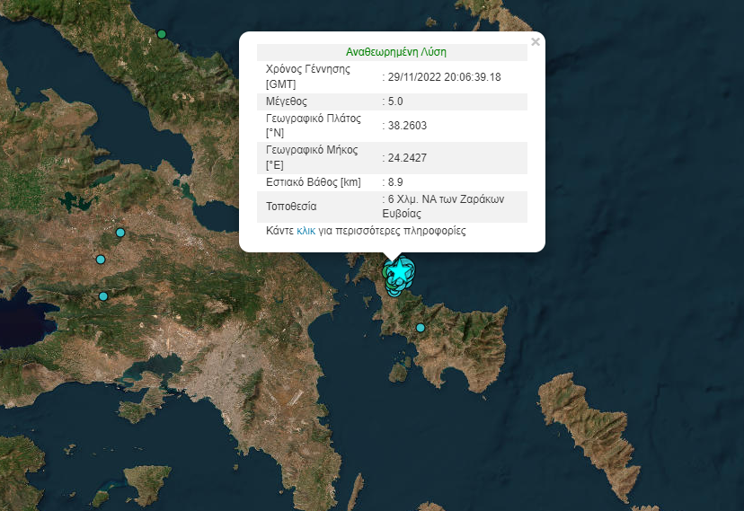 Ισχυρή σεισμική δόνηση σημειώθηκε στις 22:06 την Τρίτη (29/11) στην Εύβοια, όπου ο Εγκέλαδος χτύπησε και τα ξημερώματα και ακολούθησαν δεκάδες μετασεισμοί.