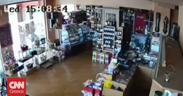 Η ώρα του μεγάλου σεισμού όπως τον κατέγραψε κλειστό κύκλωμα τηλεόρασης σε κατάστημα στην Νέα Αρτάκη.