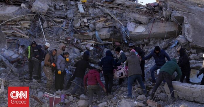 Σύμφωνα με πληροφορίες από το Πυροσβεστικό Σώμα, οι Έλληνες διασώστες αντίκρισαν μια σκηνή που τους έχει συγκλονίσει, καθώς το παιδάκι βρίσκεται κάτω από το σώμα της μητέρας του, που δεν έχει σημεία ζωής και η οποία πιθανότατα προσπάθησε να προστατεύσει το παιδί της, όταν η πλάκα του σπιτιού έπεσε πάνω τους.