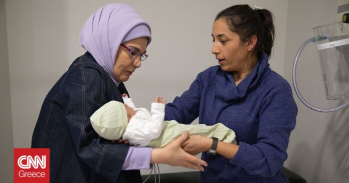 Στην Άγκυρα μεταφέρθηκαν με το προεδρικό αεροσκάφος 16 βρέφη που εντοπίστηκαν μόνα τους μετά το φονικό σεισμό ή ανασύρθηκαν από τα συντρίμμια, με την σύζυγο του Τούρκου προέδρου, Εμινέ Ερντογάν, να τα επισκέπτεται στο νοσοκομείο όπου νοσηλεύονται.