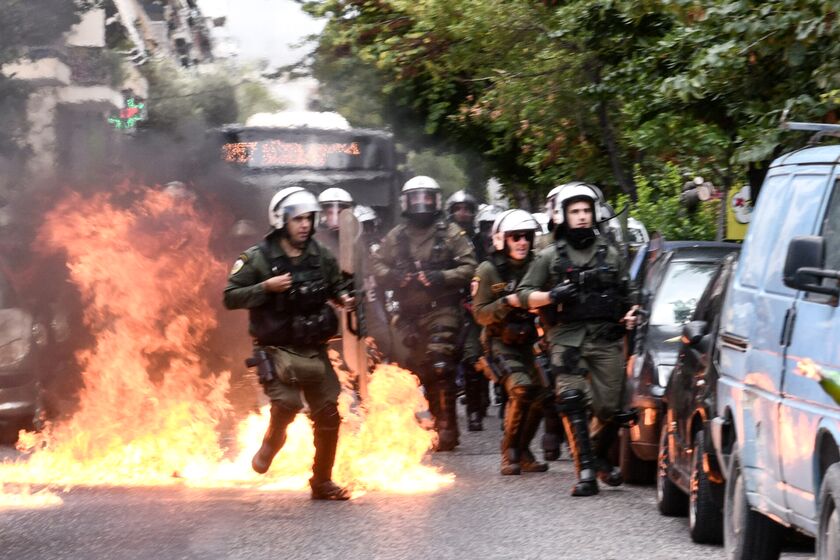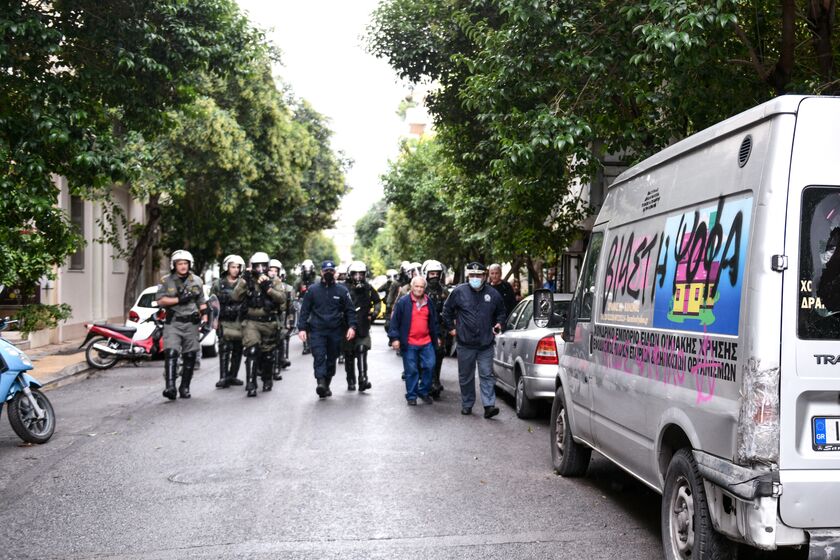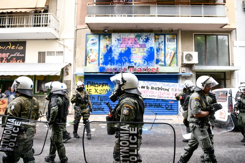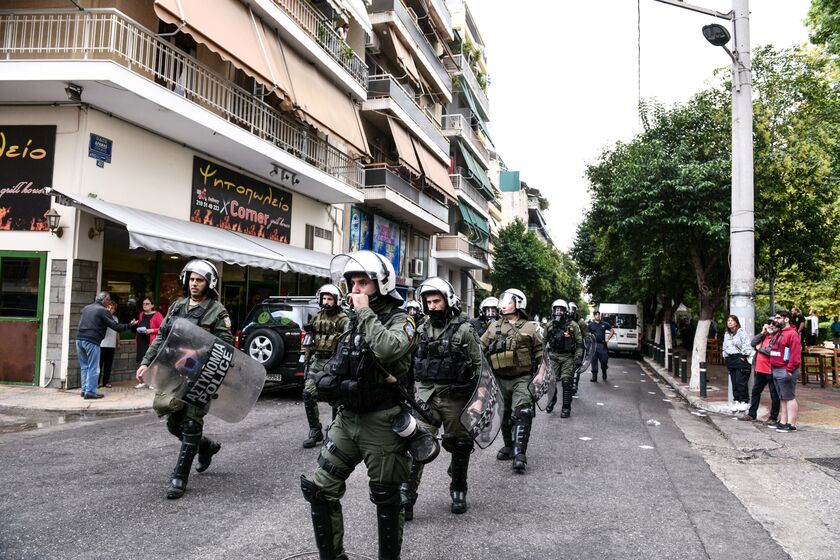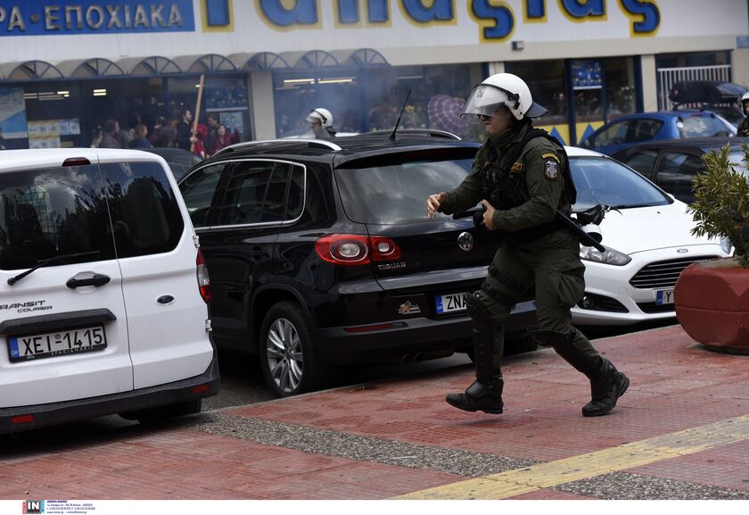 Κατά τη διάρκεια της πορείας, έπεσαν χημικά και μολότοφ ενώ κυριάρχησαν συνθήματα κατά του 53χρονου κατηγορούμενου.