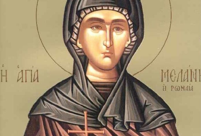 Η Οσία Μελάνη η Ρωμαία, τη μνήμη της οποία εορτάζει σήμερα η Εκκλησία, έζησε στα χρόνια του βασιλιά Ονώριου, δεύτερου γιού του Μεγάλου Θεοδοσίου. Οι γονείς της, ευγενείς και πλούσιοι, την πάντρεψαν σε μικρή ηλικία και απέκτησε δύο παιδιά.