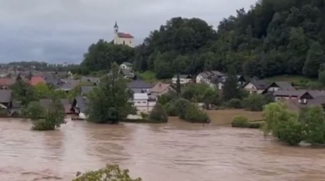Μια θάλασσα από λασπωμένα νερά προκάλεσαν οι ισχυρές βροχοπτώσεις που έπληξαν τη Σλοβενία.