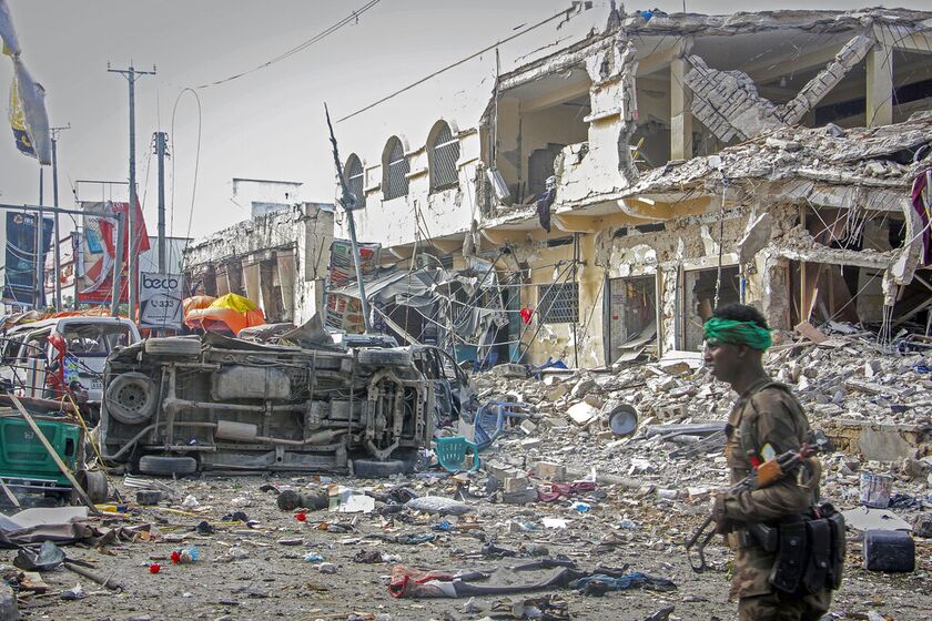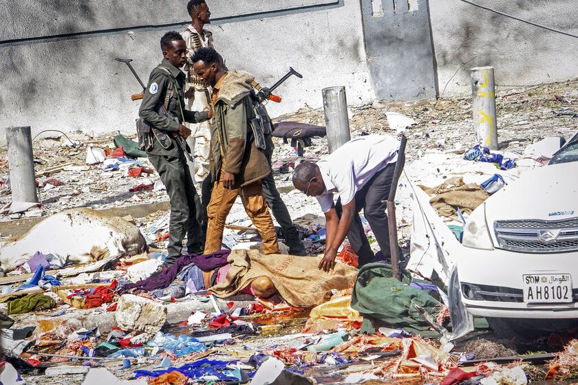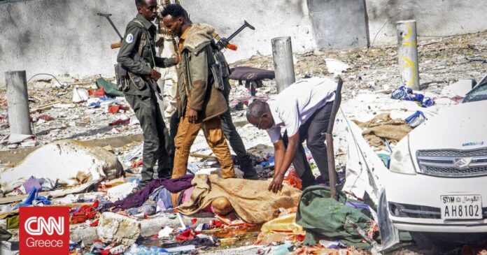 Οι δύο σχεδόν ταυτόχρονες εκρήξεις σημειώθηκαν στον πολυσύχναστο δρόμο Κ5 και υπάρχουν «πολλά θύματα» Πηγή: AP Photo/Farah Abdi Warsameh