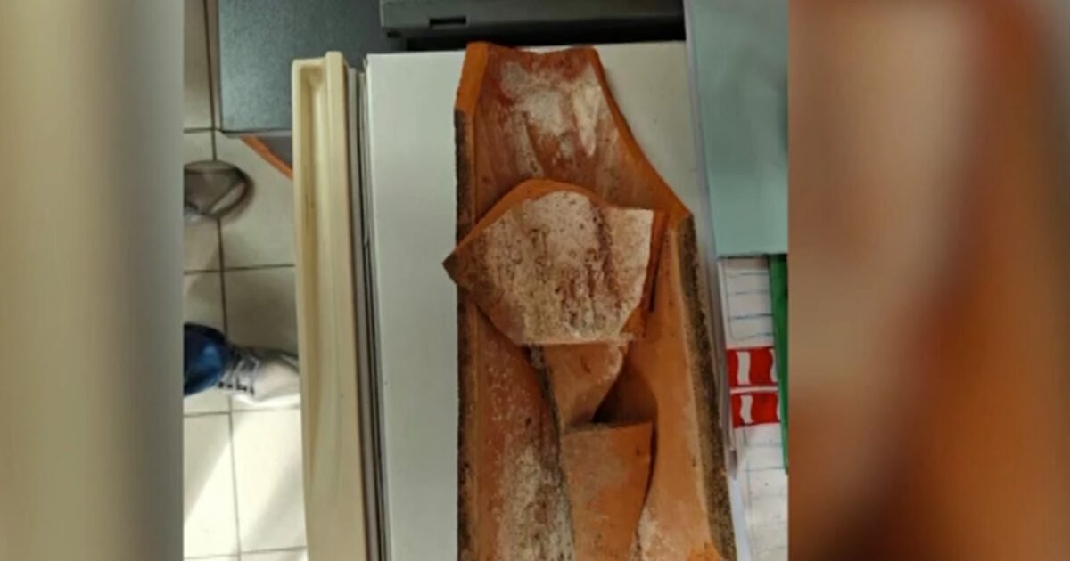 Το κεραμίδι που ξεκολλήθηκε από την οροφή σχολείου