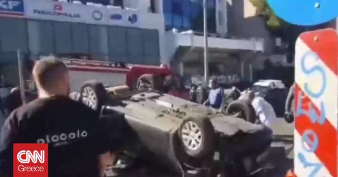 Σύμφωνα με πληροφορίες της ΕΡΤ το τροχαίο σημειώθηκε όταν σε ένα όχημα που βρισκόταν στην αριστερή λωρίδα είχε βγάλει φλας για να στρίψει αριστερά στην οδό Παπαρηγοπούλου, έπεσε με ταχύτητα ένα αυτοκίνητο που ακολουθούσε με αποτέλεσμα το δεύτερο όχημα να ανατραπεί.