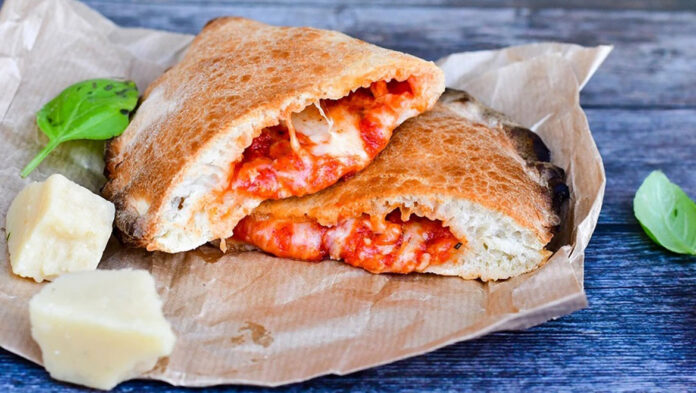 Χωρίστε τη σε 2 ίσα κομμάτια. Ανοίξτε κάθε κομμάτι σε ελαφρώς αλευρωμένη επιφάνεια σε κυκλικό σχήμα. Γεμίστε κάθε κύκλο με το 1/2 της γέμισης.