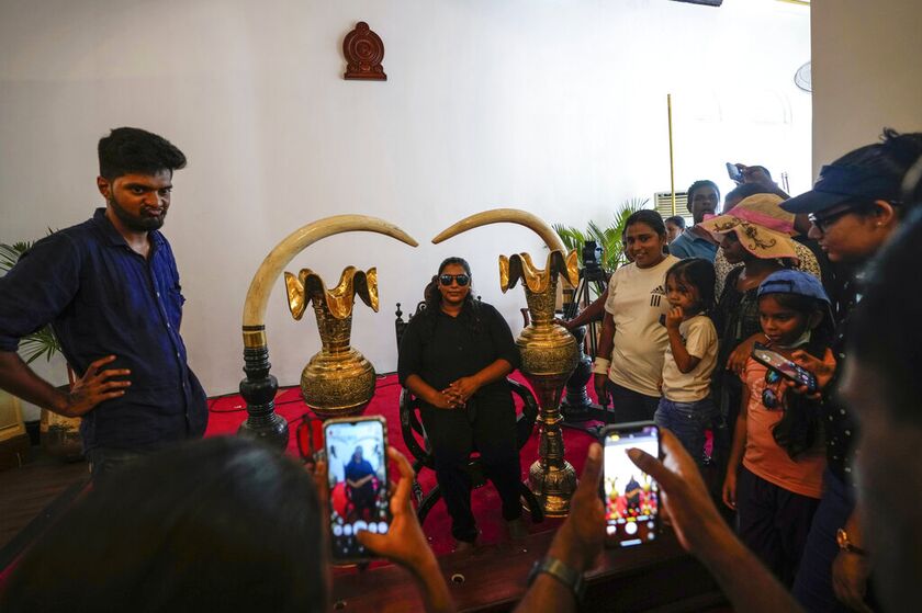 Κόσμος ποζάρει για φωτογραφίες μέσα στο προεδρικό μέγαρο Πηγή: (AP Photo/Eranga Jayawardena)