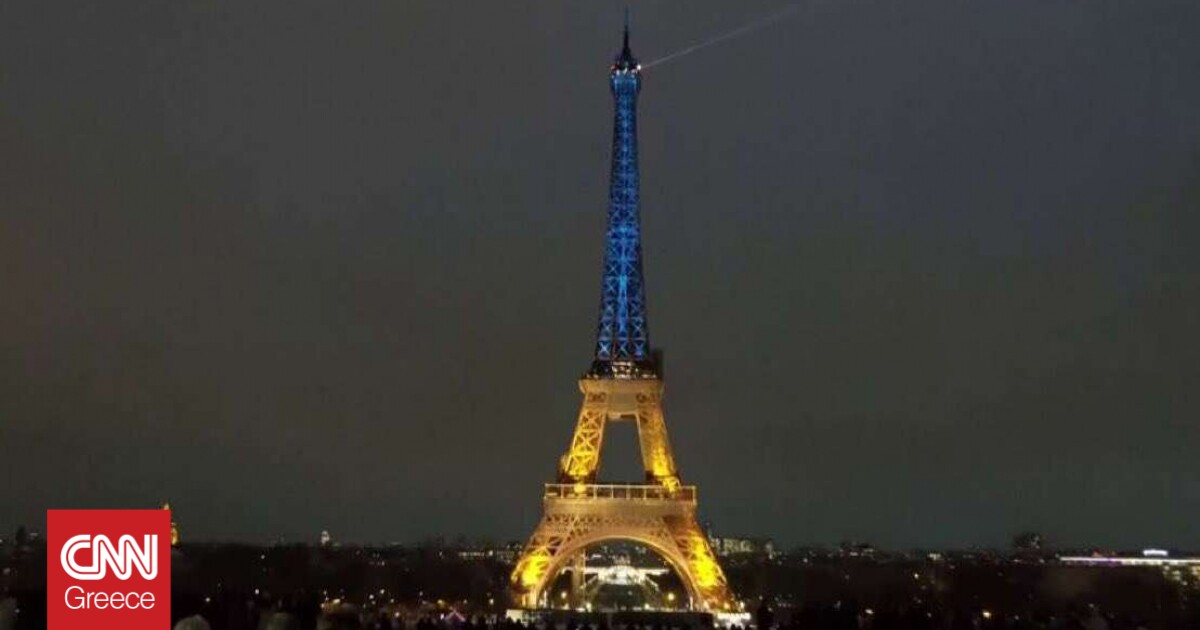 Το εμβληματικό τοπόσημο του Παρισιού θα παραμείνει φωτισμένο στα χρώματα της ουκρανικής σημαίας μέχρι την Κυριακή.