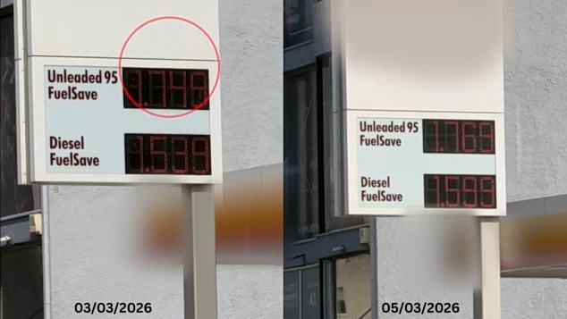 Η κάμερα του MEGA την ίδια ώρα θα καταγράψει στην Αθήνα στο 1.32 το πετρέλαιο θέρμανσης και στο 1.769 την αμόλυβδη, στο 1.33 και 1.754 σε παρακείμενο βενζινάδικο, 1,35 και 1,839 σε άλλο. Δηλαδή σε δύο κοντινά πρατήρια υπάρχει στην θέρμανση απόκλιση 3 λεπτά και 7 στην αμόλυβδη.