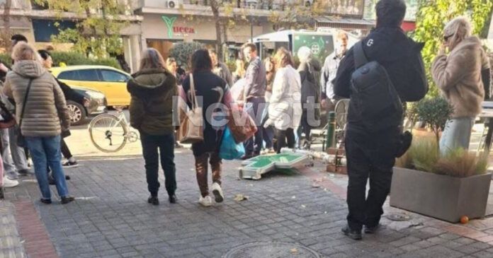Όλα έγιναν, όταν για άγνωστη μέχρι στιγμής αιτία, η ταμπέλα με τον σταυρό έξω από το φαρμακείο έφυγε από τη θέση της και έπεσε στο έδαφος χτυπώντας μια γυναίκα που περνούσε από το σημείο στη συμβολή των οδών Χανίων και Πατησίων.