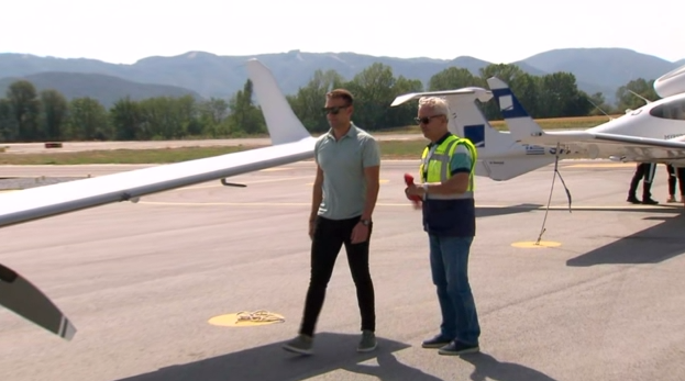 Με 4 βήματα ο Στέφανος Κασσελάκης μπαίνει μέσα στο πιλοτήριο. Βάζει τη ζώνη του, φορά τα γυαλιά του και περιμένει να ολοκληρωθεί ο έλεγχος για να πετάξουν πάνω από το καμένο δάσος της Δαδιάς.