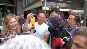 Στη συνέχεια μετέβη στο εκλογικό κέντρο του υποψήφιου περιφερειάρχη Δυτικής Ελλάδας, Κώστα Καρπέτα, ενώ έκανε και βόλτα στην πόλη συνομιλώντας με πολίτες, μία εκ των οποίων του έκανε δώρο κάλτσες Batman.