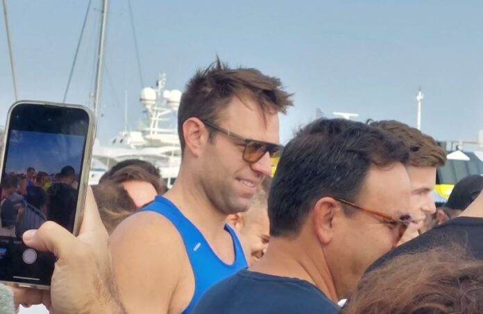 Μετά τον τερματισμό ο Στέφανος Κασσελάκης δίνει ραντεβού με συναθλητές για την επόμενη διοργάνωση στον τόπο που περνούσε μικρός τις διακοπές του με την οικογένειά του.