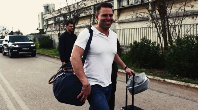Ο Στέφανος Κασσελάκης δείχνει στην κάμερα τη βαλίτσα με όλα τα απαραίτητα για τις δύο εβδομάδες παραμονής του στο στρατόπεδο.