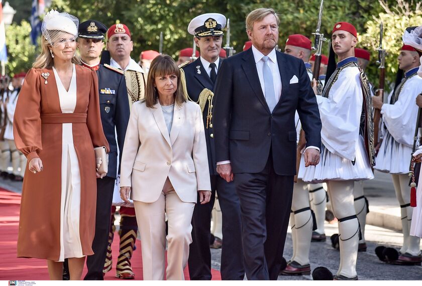 Το βασιλικό ζεύγος της Ολλανδίας με την Πρόεδρο της Δημοκρατίας Κατερίνα Σακελλαροπούλου Πηγή: INTIME / ΖΑΧΟΣ ΓΙΩΡΓΟΣ