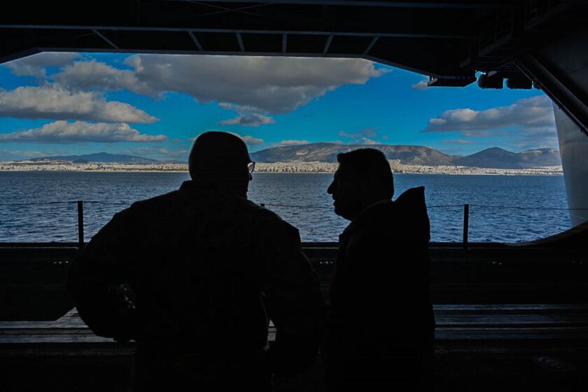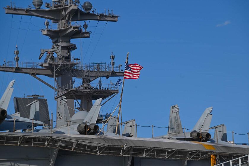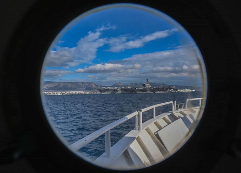 Το πυρηνοκίνητο αεροπλανοφόρο ναυλοχούσε στο αγκυροβόλιο ανοικτά του Φαληρικού όρμου, στο πλαίσιο Ξενάγησης Διακεκριμένων Επισκεπτών.