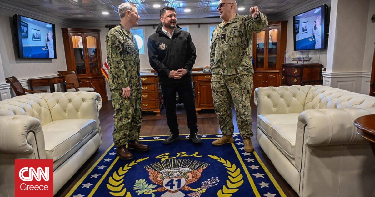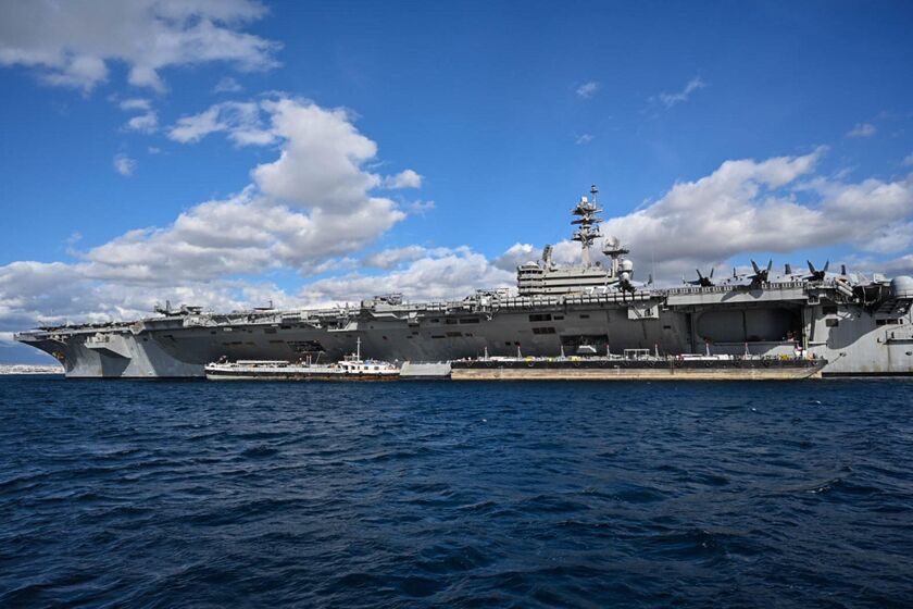 Όπως ανακοινώθηκε, τον υφυπουργό Εθνικής ‘Αμυνας υποδέχθηκαν ο διοικητής της Δύναμης Κρούσης 10 (Commander Carrier Strike Group 10) υποναύαρχος Dennis Velez και ο Κυβερνήτης Πλοίαρχος David-Tavis Pollard, οι οποίοι τον ενημέρωσαν τόσο για τις επιχειρησιακές δυνατότητες του αεροπλανοφόρου όσο και για το εύρος των αποστολών που μπορεί να αναλάβει.
