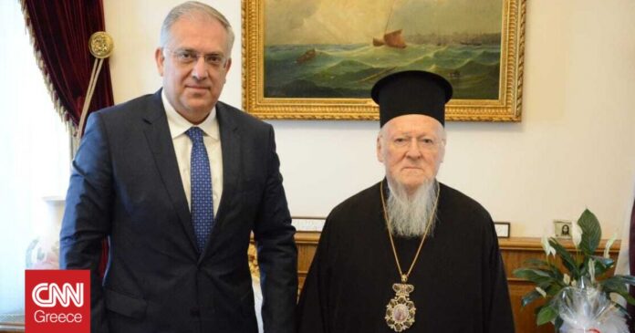 Συνάντηση με τον Οικουμενικό Πατριάρχη Βαρθολομαίο, είχε τη Μεγάλη Τετάρτη ο uπουργός Προστασίας του Πολίτη, Τάκης Θεοδωρικάκος, κατά τη διάρκεια της επίσημης επίσκεψης που πραγματοποιεί στο Οικουμενικό Πατριαρχείο Κωνσταντινούπολεως, μετά από πρόσκληση του ίδιου του Προκαθήμενου της Ορθοδοξίας στο Φανάρι.