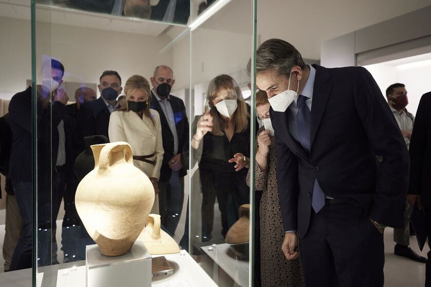 Στο νέο Αρχαιολογικό Μουσείο Χανίων εκτίθεται και αξιόλογος αριθμός αντικειμένων της Συλλογής Κωνσταντίνου και Μαρίκας Μητσοτάκη, τα οποία χρονολογούνται από την 4η χιλιετία π.Χ. έως τον 3ο αιώνα μ.Χ. Πρόκειται για μια εξαιρετικά αξιόλογη συλλογή, που δωρήθηκε στο ελληνικό δημόσιο από την οικογένεια Μητσοτάκη και την οποία ο πρωθυπουργός θαύμασε στο χώρο που εκτίθεται μαζί με την αδερφή του και βουλευτή Χανίων της ΝΔ, Ντόρα Μπακογιάννη που ήταν επίσης παρούσα στην ξενάγηση. Χάρη στους συλλέκτες τα εκθέματα της Συλλογής παρέμειναν στον γενέθλιο τόπο τους.