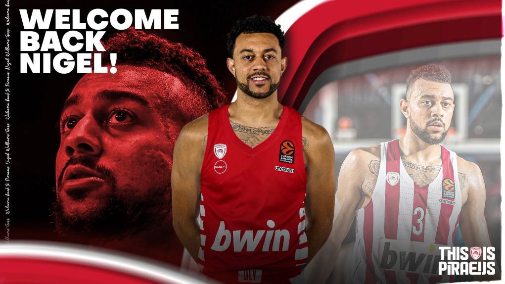 «Η ΚΑΕ Ολυμπιακός ανακοινώνει την απόκτηση του Νάιτζελ Γουίλιαμς-Γκος. Ο Αμερικανός γκαρντ θα φορέσει και πάλι τα ερυθρόλευκα έπειτα από τέσσερα χρόνια, υπογράφοντας συμβόλαιο διετούς διάρκειας.