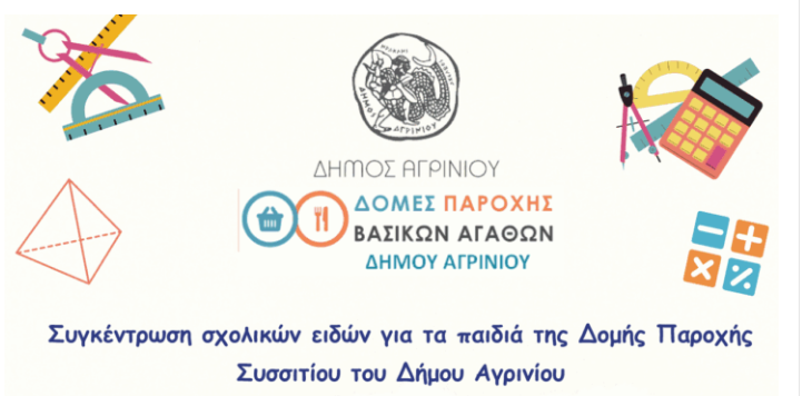 Η Αντιδήμαρχος της Διεύθυνσης Κοινωνικής Προστασίας και Δημόσιας Υγείας του Δήμου Αγρινίου, κ. Γεωργία Μπόκα, με τη Δομή Παροχής Συσσιτίου της Διεύθυνσης, ενόψει έναρξης της νέας σχολικής χρονιάς απευθύνουν κάλεσμα σε πολίτες, φορείς και επιχειρήσεις να συνεισφέρουν με σχολικά είδη και ο,τιδήποτε μπορεί να είναι χρήσιμο για τον μαθητή.