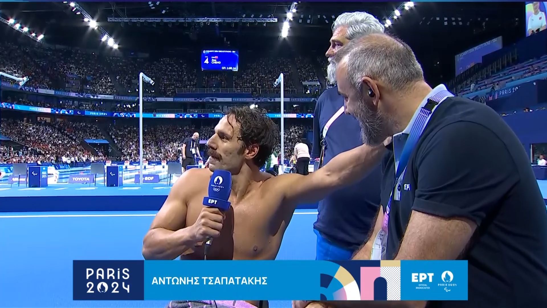 Ο ασημένιος Παραολυμπιονίκης του Παρισιού μίλησε στην κάμερα της ΕΡΤ, λίγα λεπτά μετά την ιστορική του επιτυχία στα 100 μέτρα πρόσθιο κατηγορίας SB4.