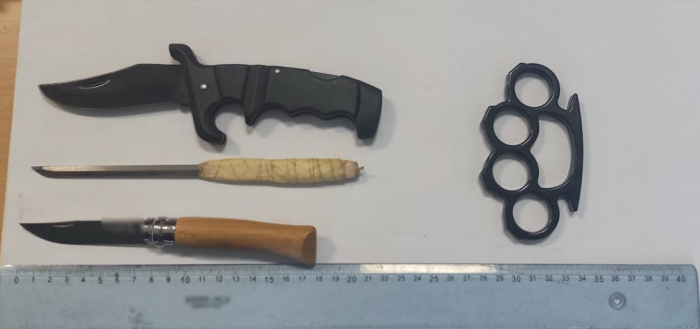 - Ένα στρατιωτικό μαχαίρι, ένα σουγιά και ένα μεταλλικό ξιφίδιο.