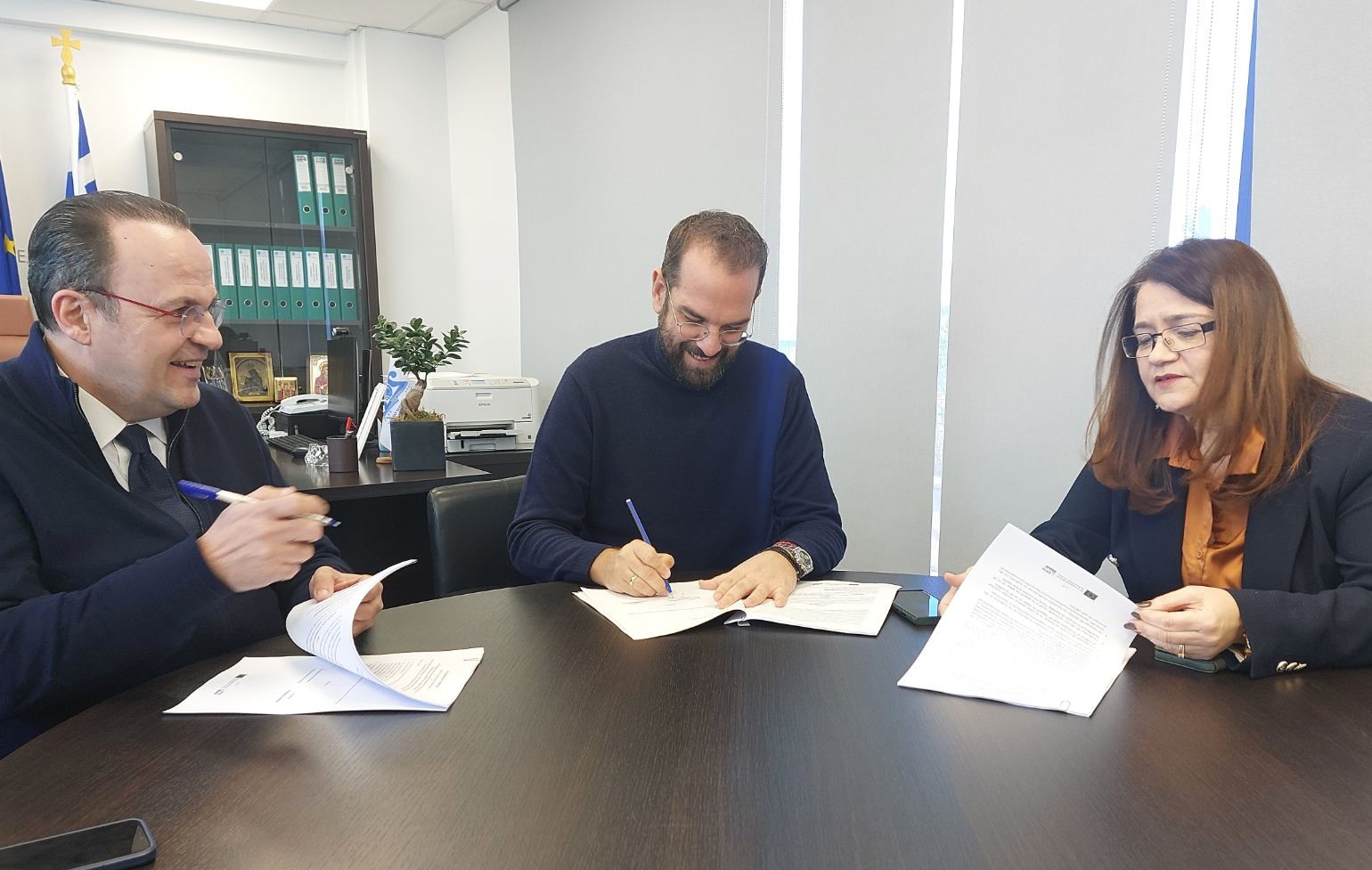 Στην υπογραφή Επιχειρησιακής Συμφωνίας για το Πρόγραμμα «Δυτική Ελλάδα 2021-2027», προχώρησαν ο Περιφερειάρχης Δυτικής Ελλάδας Νεκτάριος Φαρμάκης και ο Πρόεδρος του ΕΦΕΠΑΕ, Πλάτωνας Μαρλαφέκας, σήμερα Τρίτη 30 Ιανουαρίου 2024, στα γραφεία της Περιφέρειας Δυτικής Ελλάδας στην Πάτρα, παρουσία της Γενικής Διευθύντριας της Διαχειριστικής Ευρωπαϊκών Προγραμμάτων και Υπεύθυνης Έργου του Προγράμματος «Δυτική Ελλάδα 2021-2027», Μάγδας Πετροπούλου.